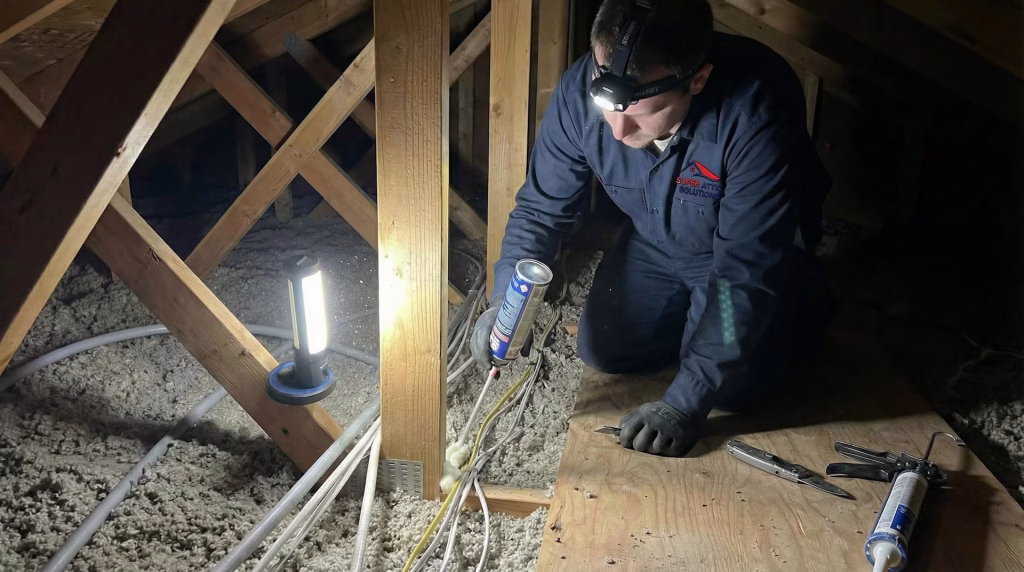 Common areas to focus on include gaps around windows and doors, attic hatches, ducts, and any spaces where pipes or wiring enter the home. Our team will perform a thorough inspection to ensure all potential leaks are sealed.